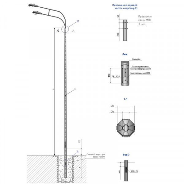 Опора освещения НПГ-10,0(75)/11,5-02-ц, где: