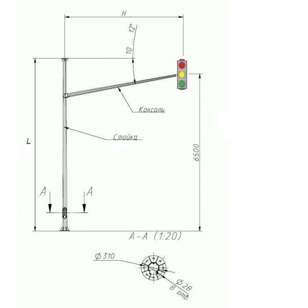 Опора ОГСГ-8,15-6,5 — это гранёная силовая светофорная конструкция. Используется для установки светофоров, возможно дополнительно установить дорожные знаки, указатели, видеофиксаторы.